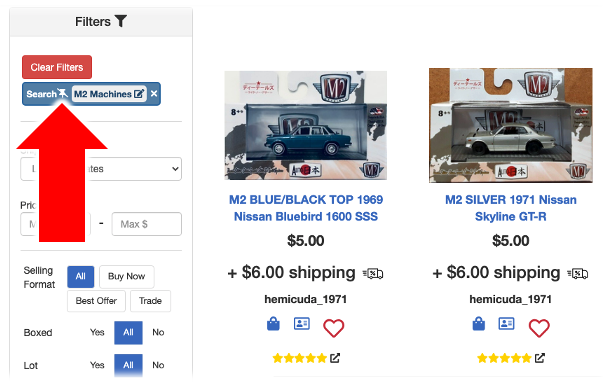 For buyers we created default filters, so if you only want M2 Machines you can click the little pin on the search tag to make it permanent (i.e. until you unpin it by clicking on it again) -