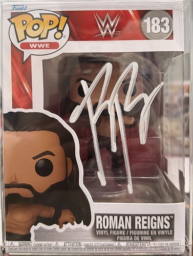 request database edition for autographed variant of WWE Funko Pop 183 - Roman Reigns (Superman Punch). Item signed by Roman reigns. Estimated value $250 USD https://www.hobbydb.com/marketplaces/hobbydb/catalog_items/roman-reigns-9045cc3c-c408-4637-bf0a-fc0e75c6d7f1